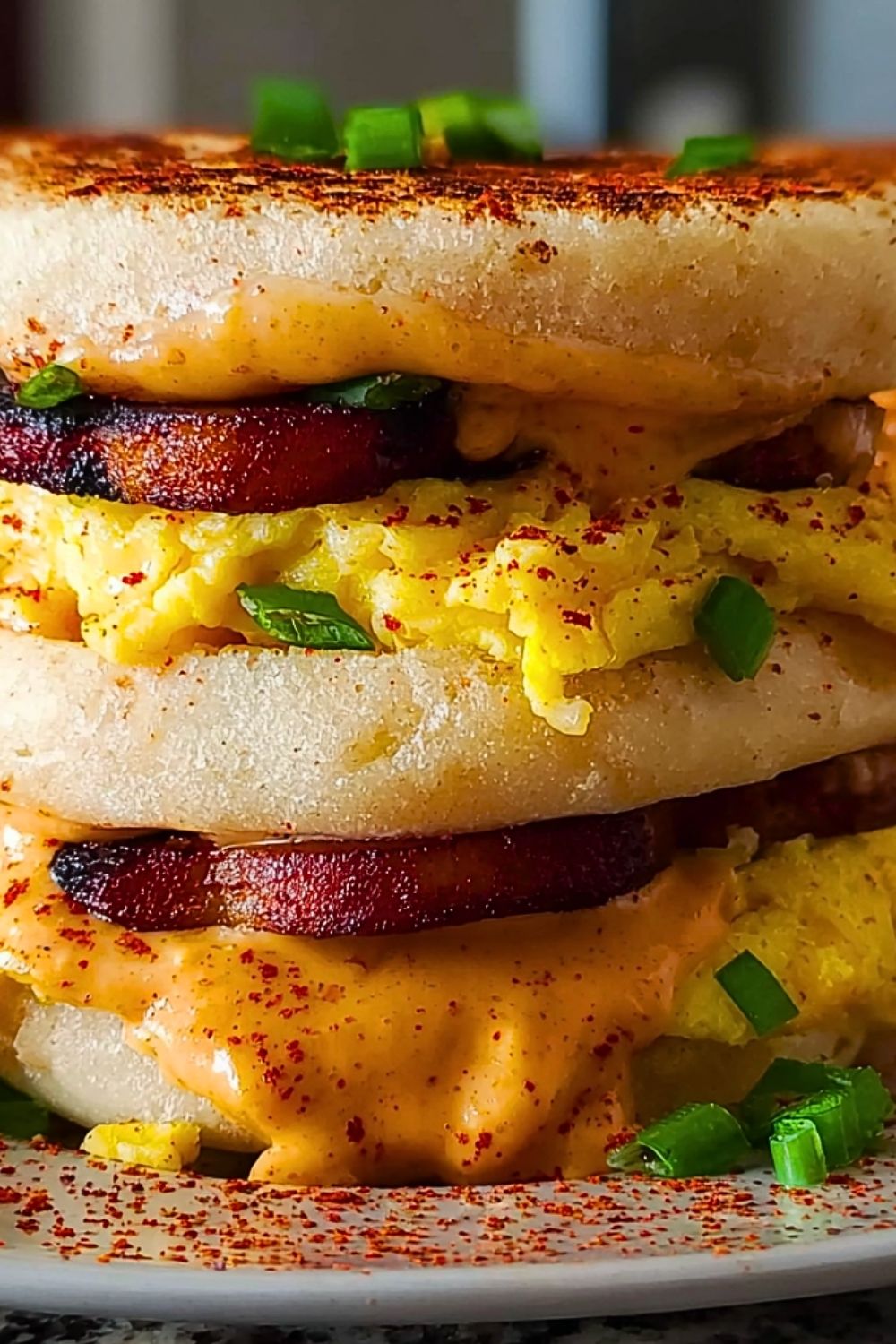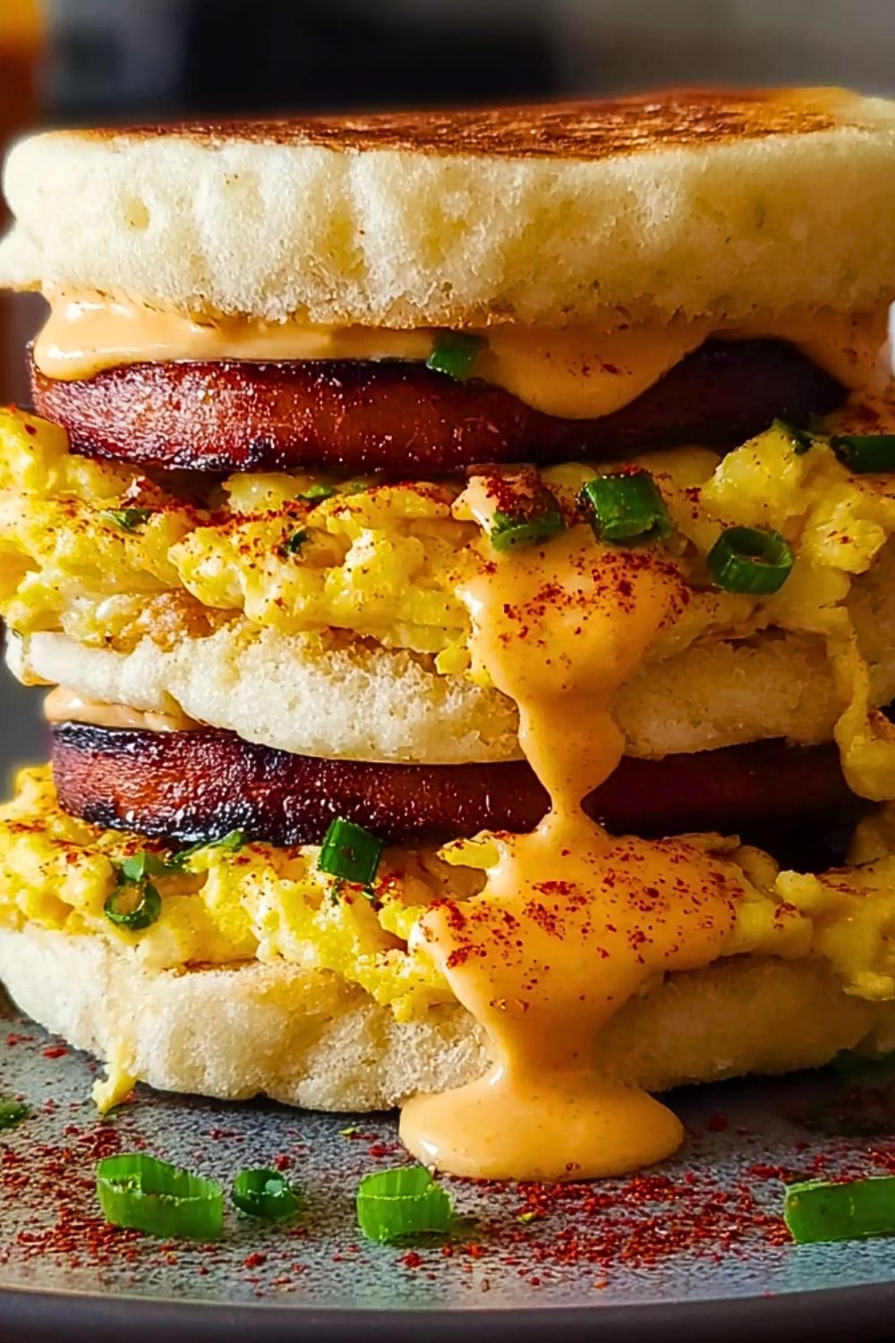 This sandwich brings serious flavor without being fussy. The chipotle mayo gives it a smoky, spicy kick that wakes up your taste buds, while the scrambled eggs are rich, soft, and cooked just right with chives or scallions for that pop of green. The meat (use ham, bacon, or even Spam like in the photo) adds a savory chew, and all of it is nestled between perfectly crisp English muffins. It’s hearty, satisfying, and easy to customize.