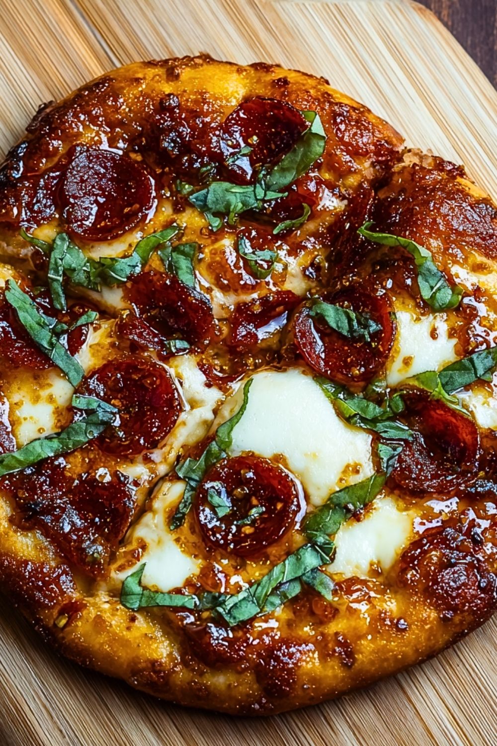 Start by letting your dough rest at room temperature for about 30–60 minutes if it has been refrigerated — this makes it easier to stretch and shape without tearing. Use plenty of flour or semolina on your work surface and pizza peel to prevent sticking. For a perfect balance of flavors, apply the hot honey after baking, so it doesn’t burn in the oven. And lastly, don’t overload the toppings — keeping it simple lets the heat of the honey and richness of the pepperoni shine.