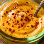 Store Spicy Shut Yo Mouth Sauce in an airtight container in the refrigerator for up to 7 days. Stir before each use, as some separation may occur naturally over time. Avoid freezing, as the texture may split when thawed. Always use clean utensils when scooping it to extend shelf life.