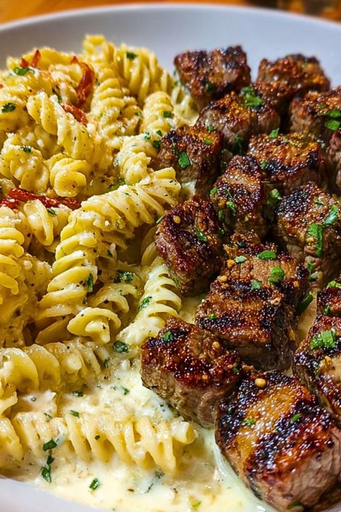Why You’ll Love This Steak Bites and Cheesy Rotini in Garlic Parmesan Sauce