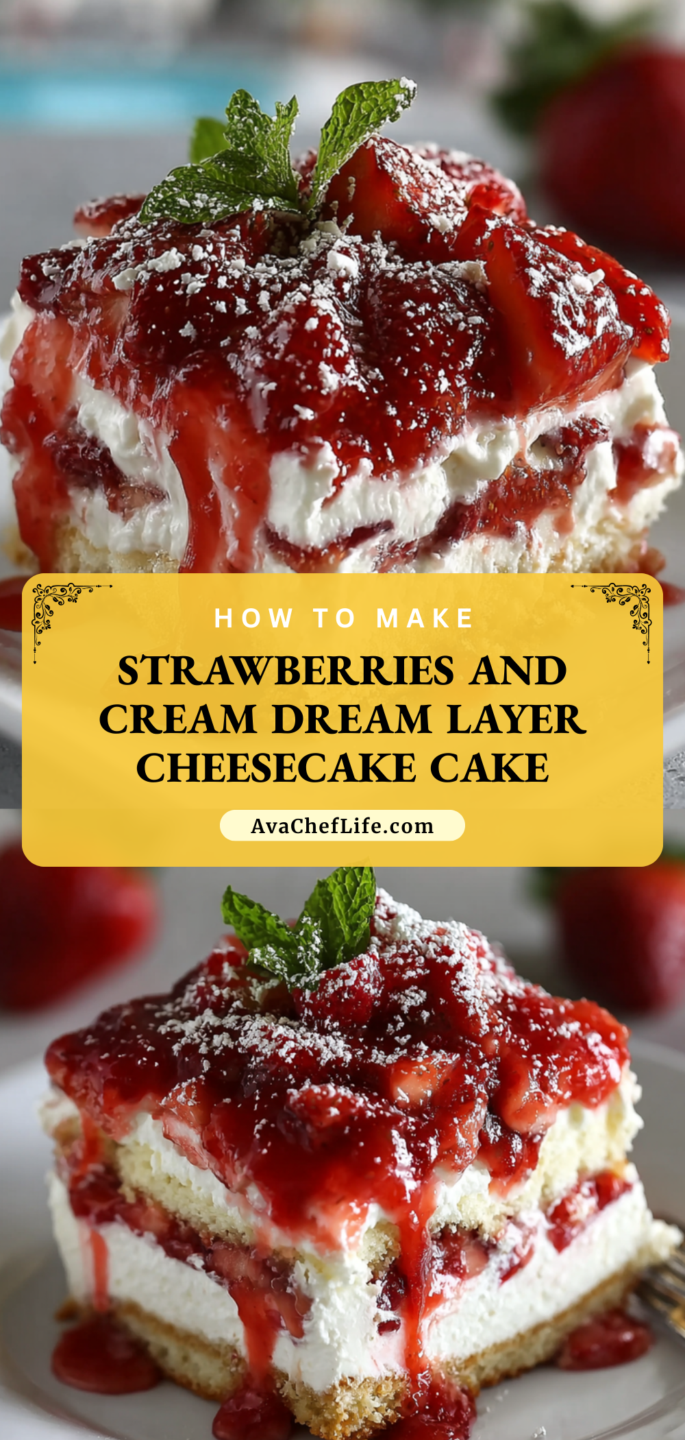 Strawberries and Cream Dream Layer Cheesecake Cake