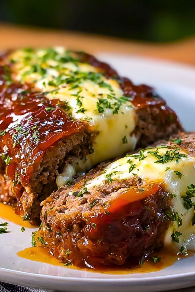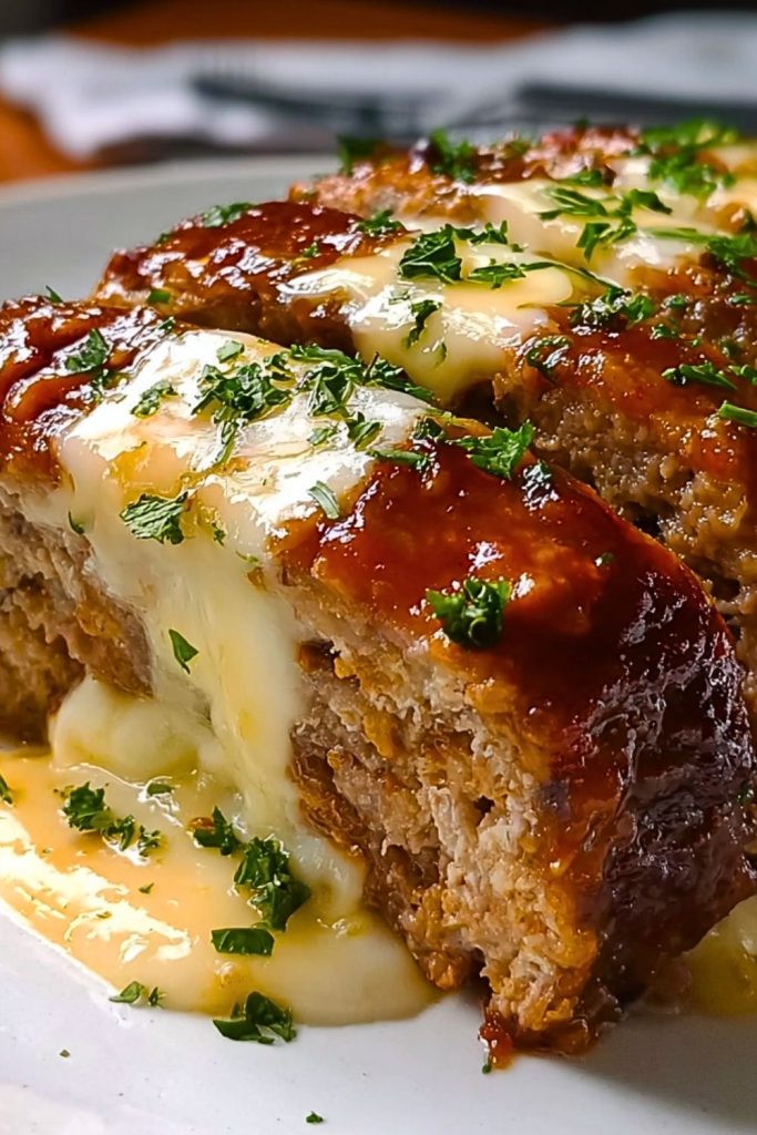 These ingredients come together to create a rich, moist meatloaf with a golden glaze and a creamy melted center. Feel free to add your own flair with different cheeses or fresh herbs!
