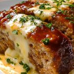Stuffed Meatloaf with Mozzarella is the kind of comforting, show-stopping dinner that brings everyone to the table with anticipation. Juicy ground beef is seasoned to perfection, then wrapped lovingly around a rich, melty core of mozzarella cheese. As it bakes, the meat stays succulent while the cheese becomes a molten, gooey center—oozing slightly when sliced for an irresistible visual and flavor experience. The sweet-tangy glaze on top caramelizes beautifully, adding a glossy finish and a burst of flavor with every bite.