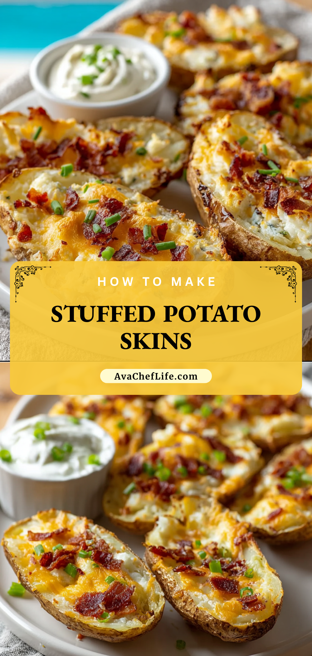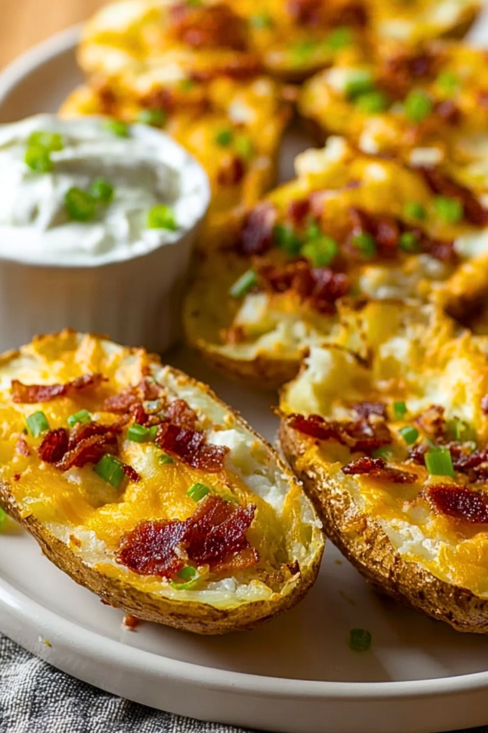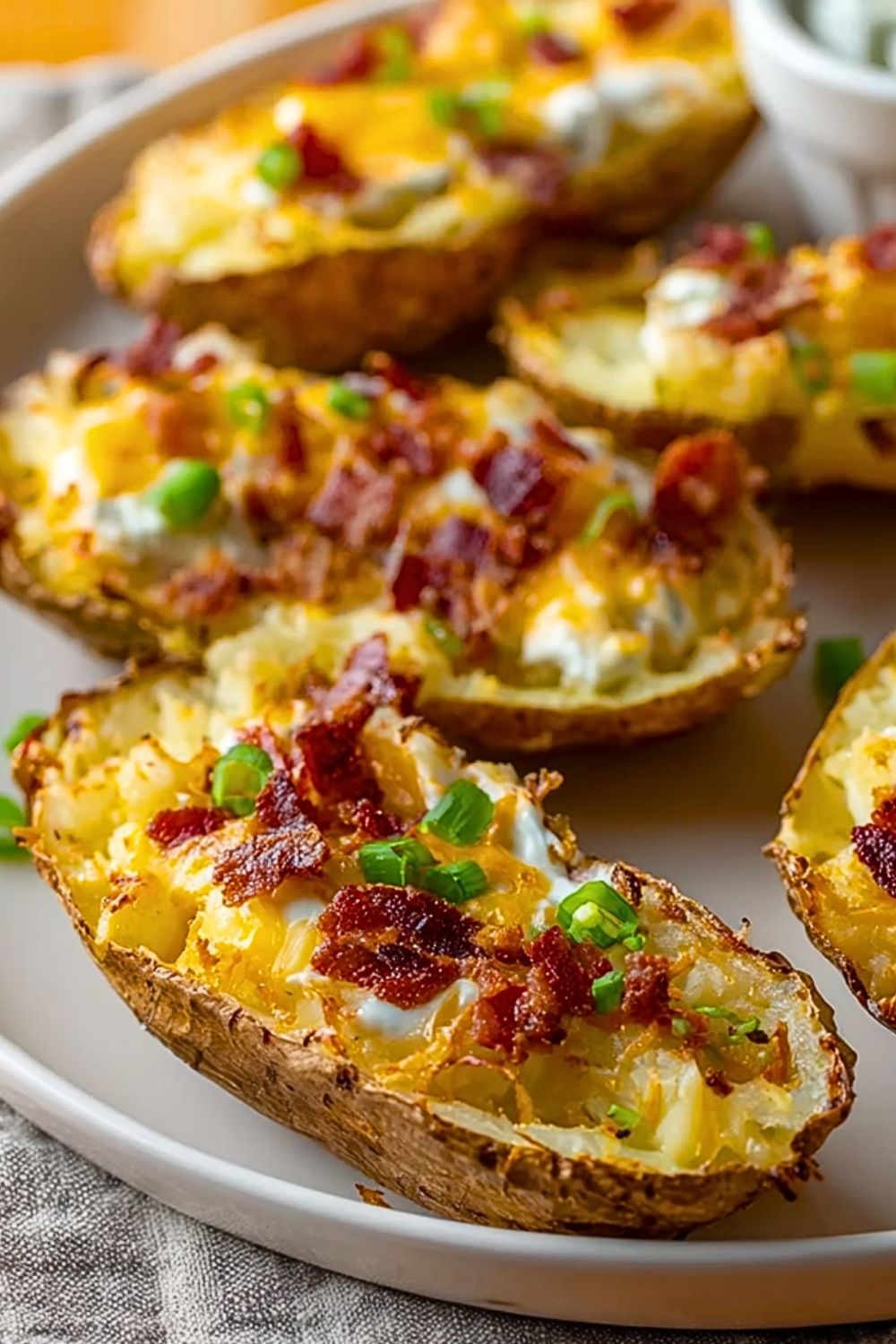 Keywords: stuffed potato skins, easy appetizer, party food, game day snack, loaded potatoes, baked potatoes