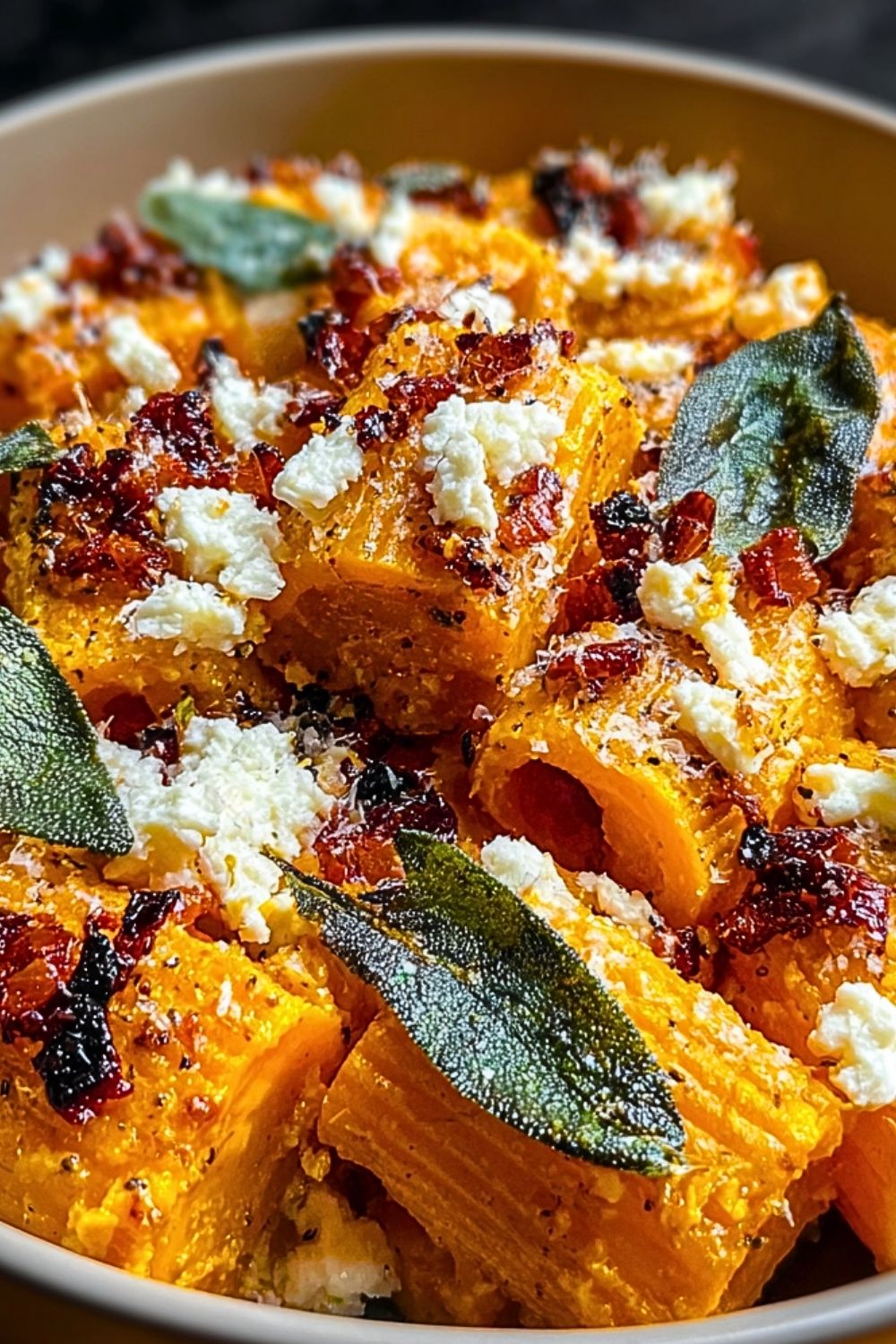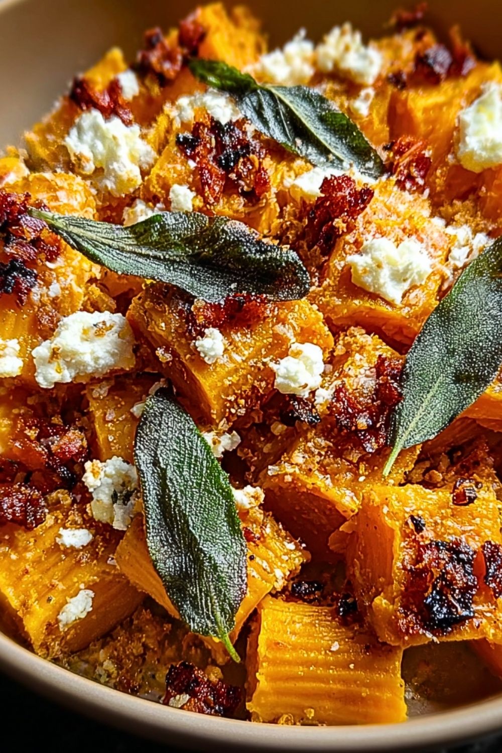 This dish is as flexible as it is flavorful. You can easily swap rigatoni for penne, fusilli, or even shells. If goat cheese isn’t your favorite, try using cream cheese or ricotta for a milder flavor. The sweet potatoes bring natural sweetness and body to the dish, so it’s still balanced even with cheese substitutions. The crispy sage adds a wonderful herbal crunch — don’t skip it if you can help it.