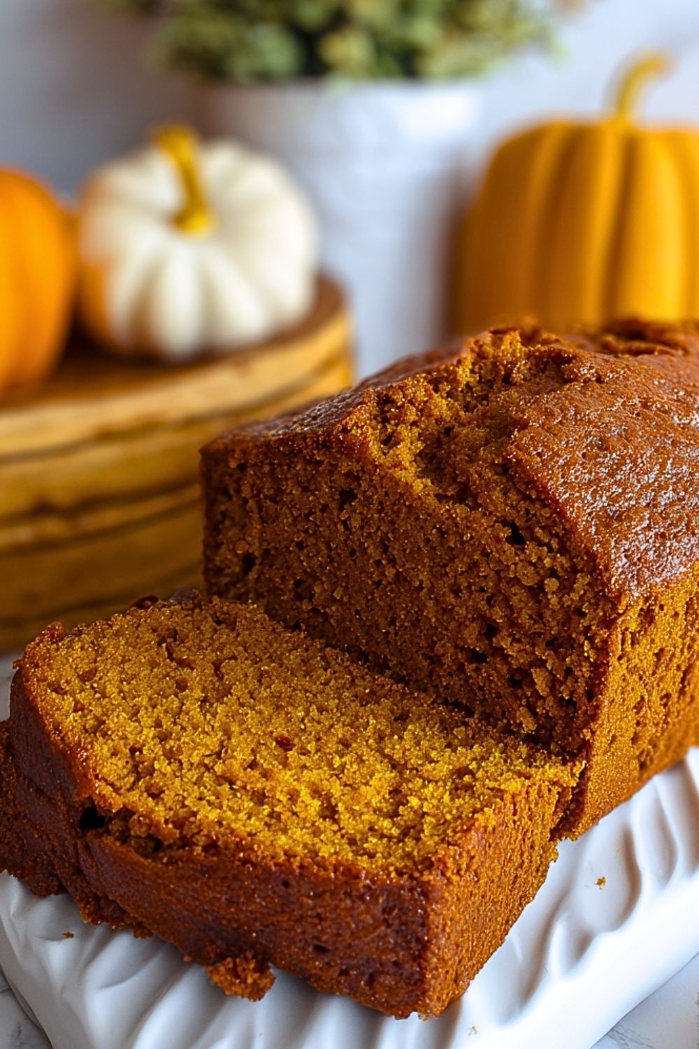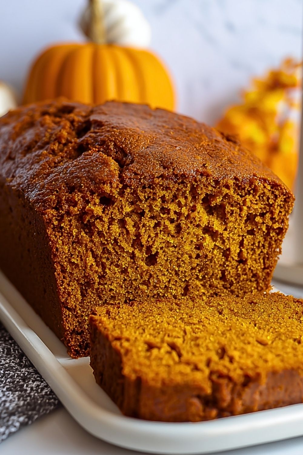 Once completely cooled, slice the pumpkin bread using a sharp serrated knife. Serve as is, or spread with butter or cream cheese for extra indulgence.