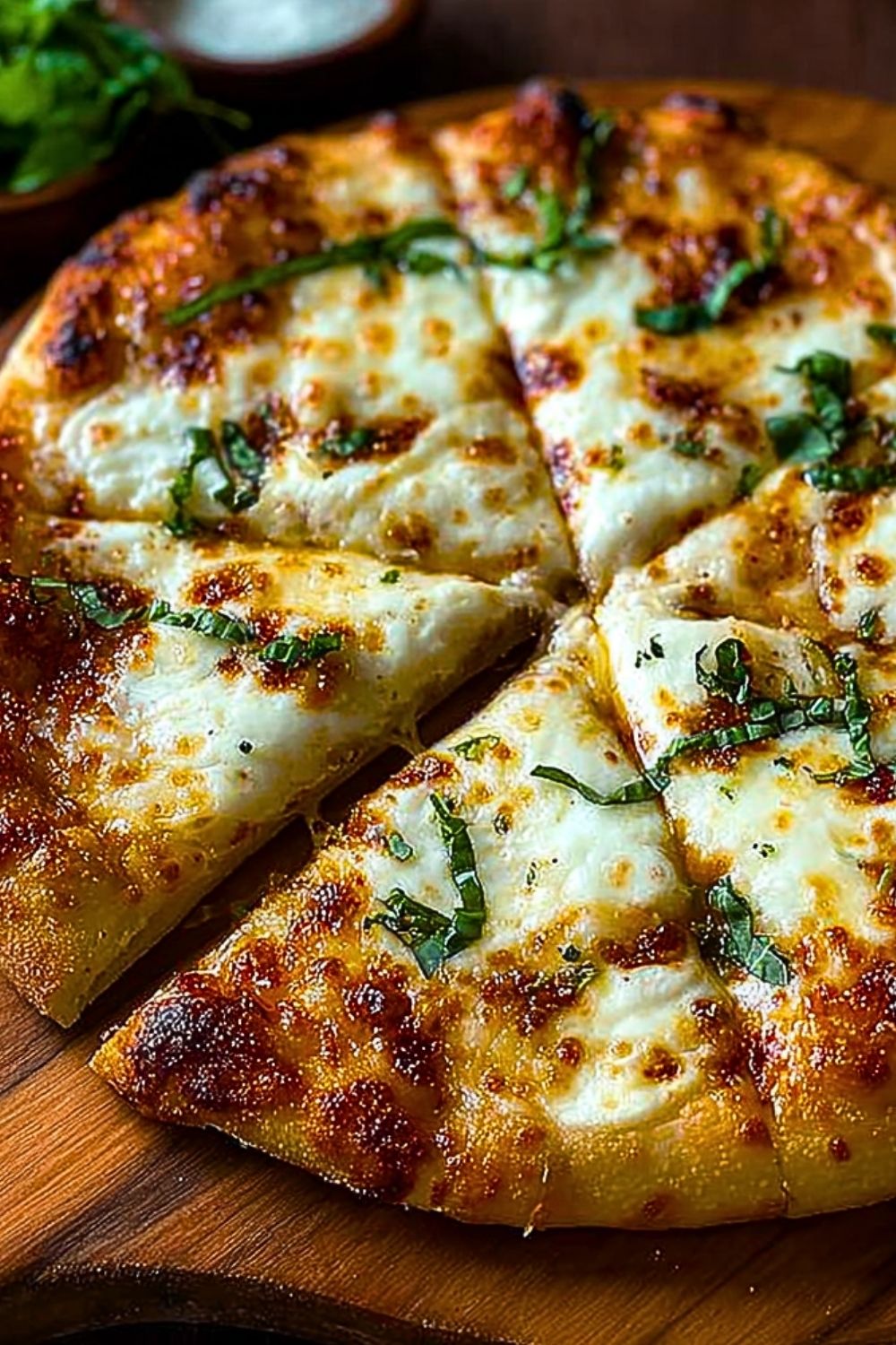 I’ve always had a soft spot for white cheese pizza. It’s one of those comforting dishes that doesn’t rely on the usual tomato base but still brings the same level of indulgent satisfaction. The creamy mozzarella, the tangy ricotta, and the garlicky olive oil blend together into a dream topping, made even better with a thin, golden-brown crust and a sprinkling of fresh greens. Whenever I make this pizza, the kitchen fills with the rich, nutty aroma of melting cheese and toasted dough — and that’s when I know dinner is going to be something special.