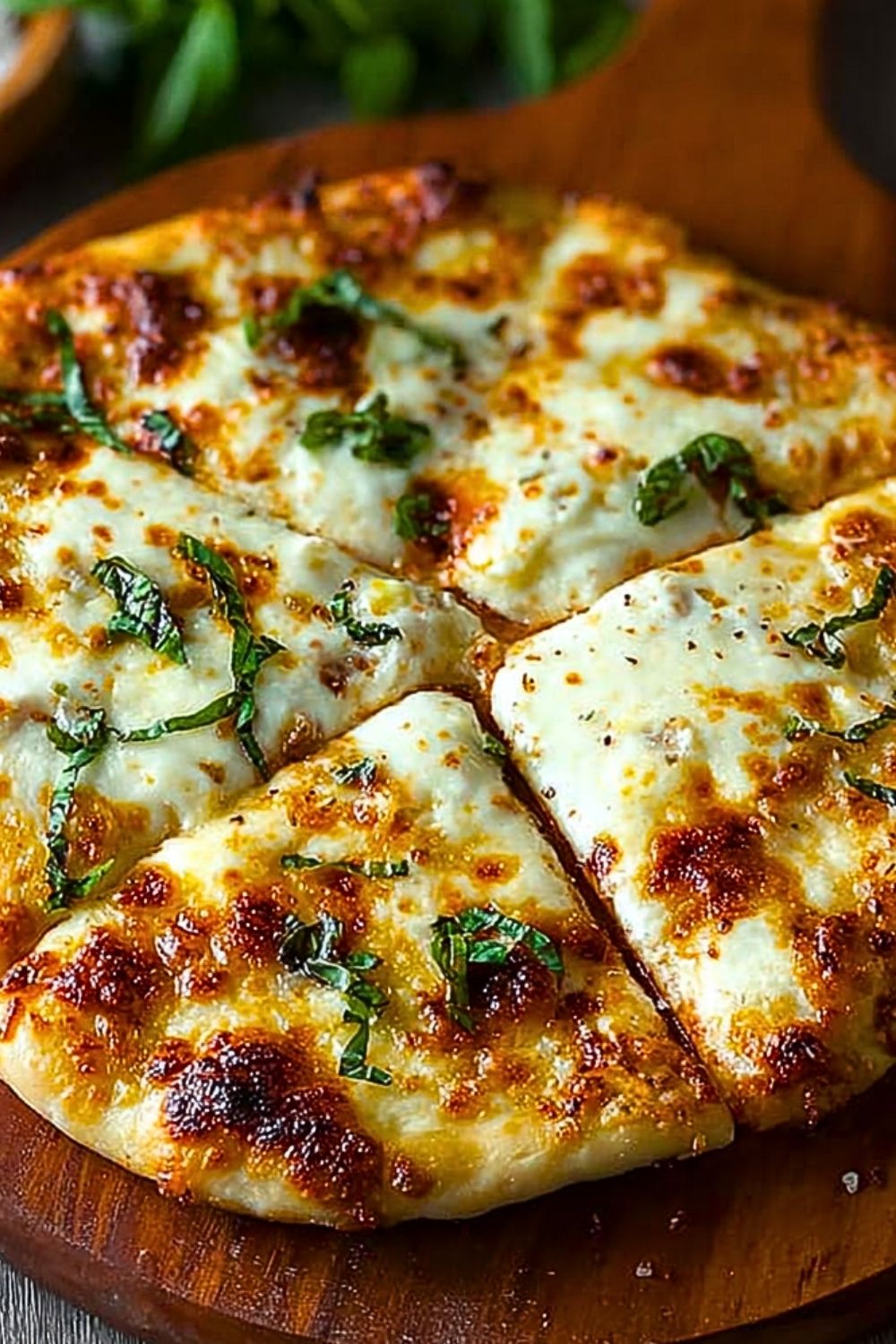 This white cheese pizza is creamy, garlicky, and completely addictive. It skips the traditional tomato sauce, making it perfect for anyone looking to try something different while still enjoying all the gooey, melty magic of a pizza night. The blend of cheeses gives it depth and richness, and the addition of fresh arugula or herbs on top provides a pop of freshness.