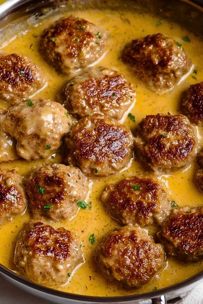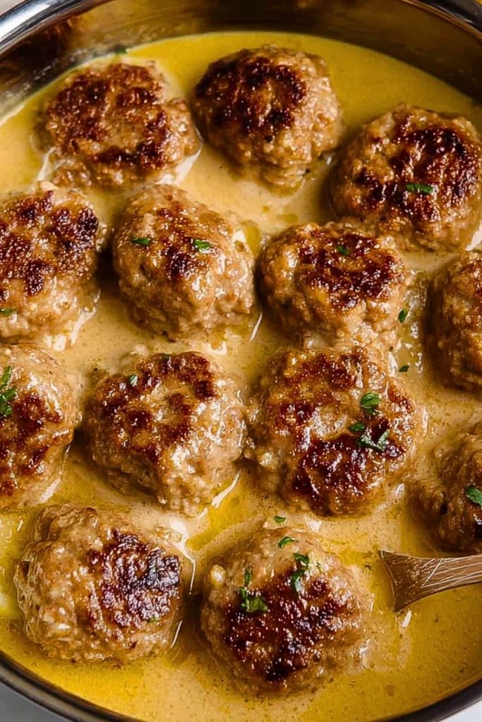 7. Return meatballs to the pan, pour sauce over, and simmer on low for 5–8 minutes.