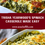 Keywords: spinach casserole, cheesy casserole, Trisha Yearwood recipe, quick dinner, vegetable side