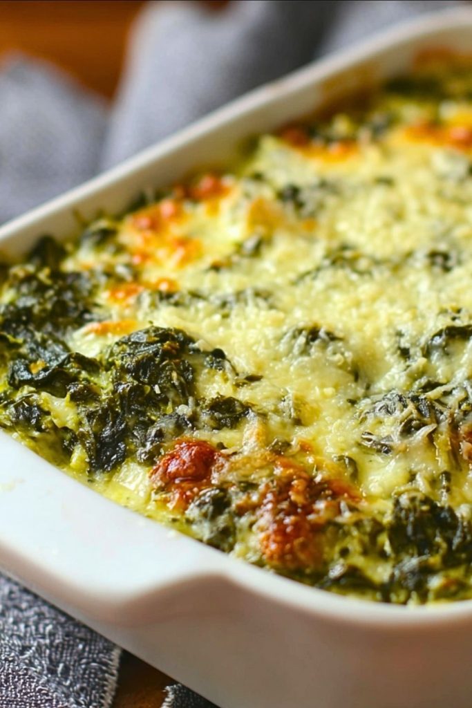 This casserole is a crowd-pleaser because it balances rich, cheesy comfort with the earthy flavor of spinach. It can easily be adapted to suit different dietary preferences—use low-fat dairy options for a lighter version or swap in vegan alternatives. If you prefer a spicier twist, try adding a pinch of red pepper flakes or diced jalapeños to the mix. You can also customize the cheese blend by using cheddar, Swiss, or gouda.