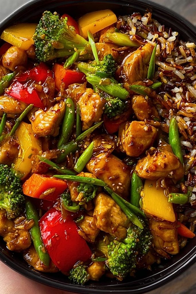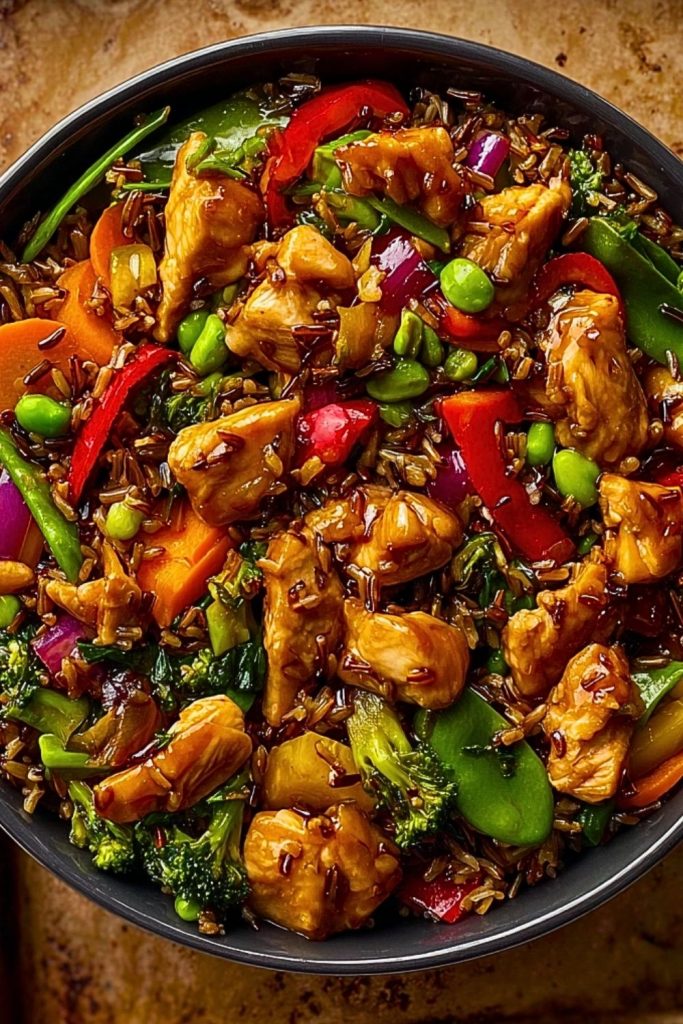 A vibrant, flavor-packed stir-fry with juicy chicken, rainbow vegetables, and a glossy homemade teriyaki sauce served over hearty wild rice. It’s fast, nourishing, and better than takeout — ideal for weeknights or meal prep.
