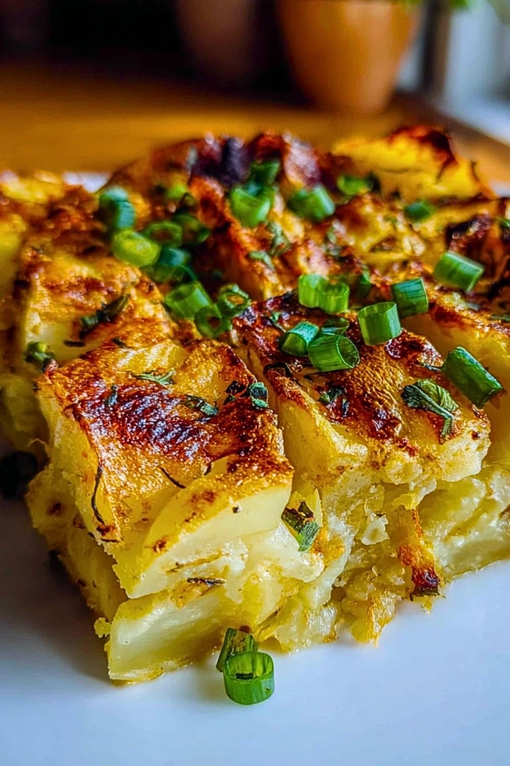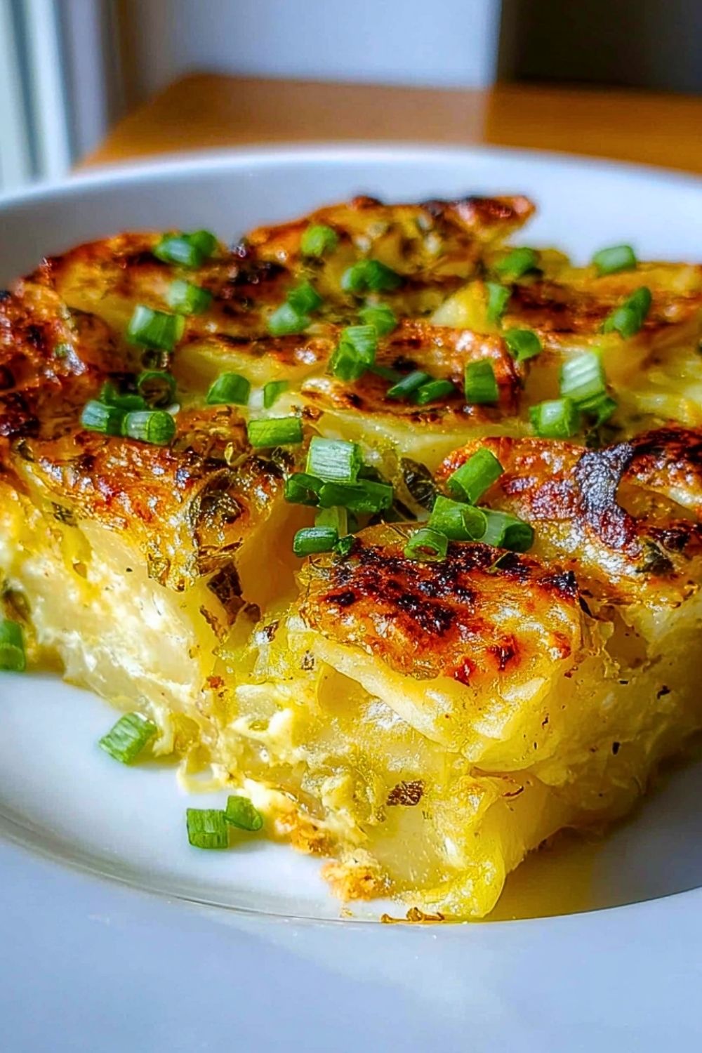 Once baked, remove the dish from the oven and let it rest for at least 10–15 minutes. This allows the sauce to set and makes slicing easier. Garnish with freshly chopped green onions or chives just before serving to add a pop of color and a fresh, mild onion flavor.
