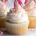 Pipe or spread the buttercream onto cooled cupcakes. Sprinkle with crushed candy canes and top with a mini candy cane for the perfect festive touch.
