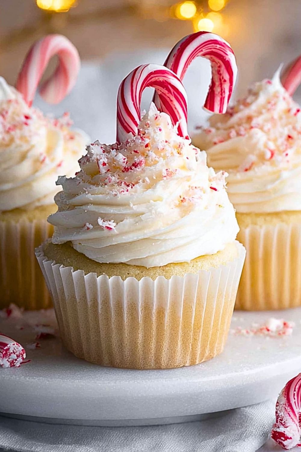 You can swap the peppermint extract for vanilla if you’re not a fan of mint — the cupcakes will still be sweet and delicious. For a dairy-free version, use a plant-based butter and your favorite non-dairy milk. If you don’t have white chocolate on hand, you can try cream cheese frosting with peppermint extract for a tangy twist. And for garnish, crushed peppermint bark or even red-and-white sprinkles make a festive stand-in for candy canes.