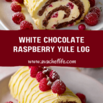 The White Chocolate Raspberry Yule Log is a show-stopping festive dessert that blends elegance with rich, decadent flavor. With its soft, chocolate sponge rolled around a creamy raspberry-studded filling and coated in smooth white chocolate ganache, this dessert is as delightful to look at as it is to eat. Each bite delivers a contrast of textures—moist cake, luscious filling, and a crisp outer shell—all balanced with the tart brightness of fresh raspberries.